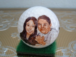 Here are some examples of portrait golf balls and your own can be ordered. You are encouraged to submit a picture and the artist will create a ball just for you with the same level of detail. See the price list for details.